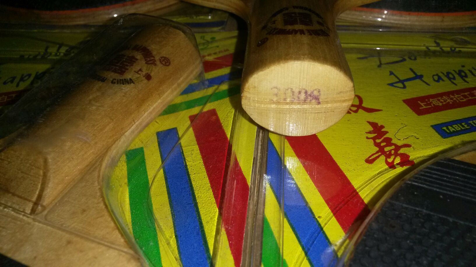 Classic nostalgic old Red Double Happiness 7-layer bottom plate pen-hold straight table tennis racket single-sided plastic one-piece price: 150