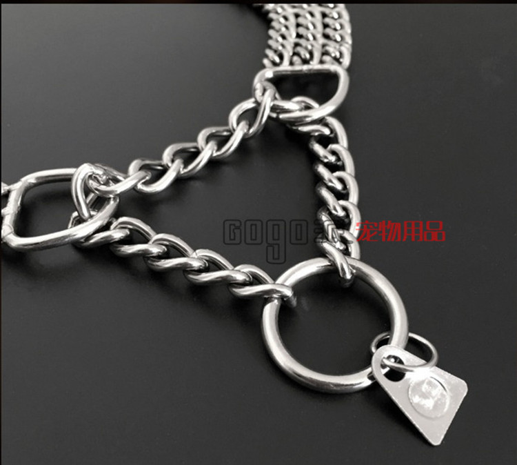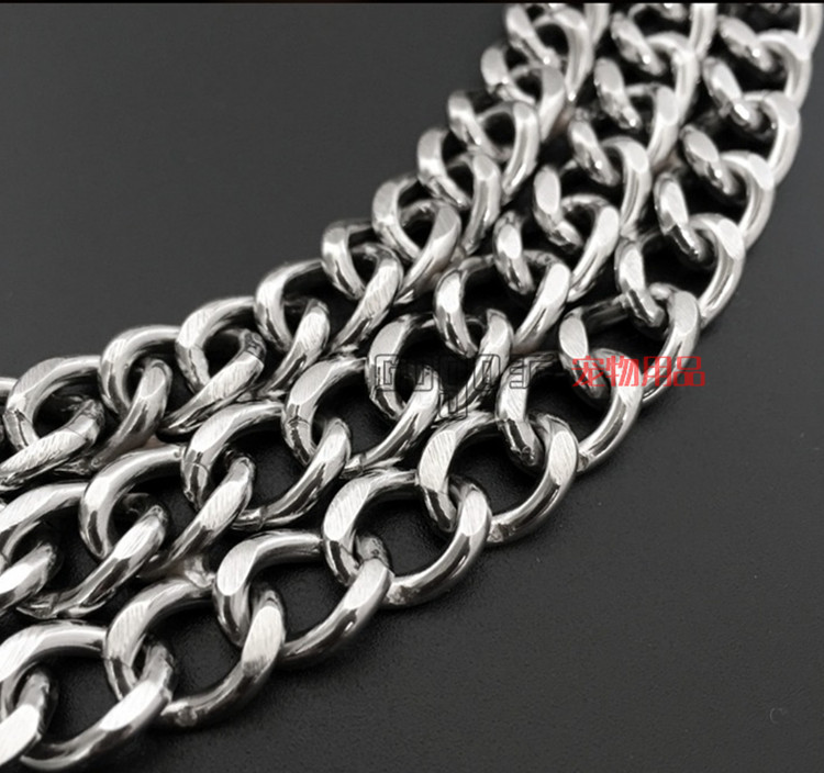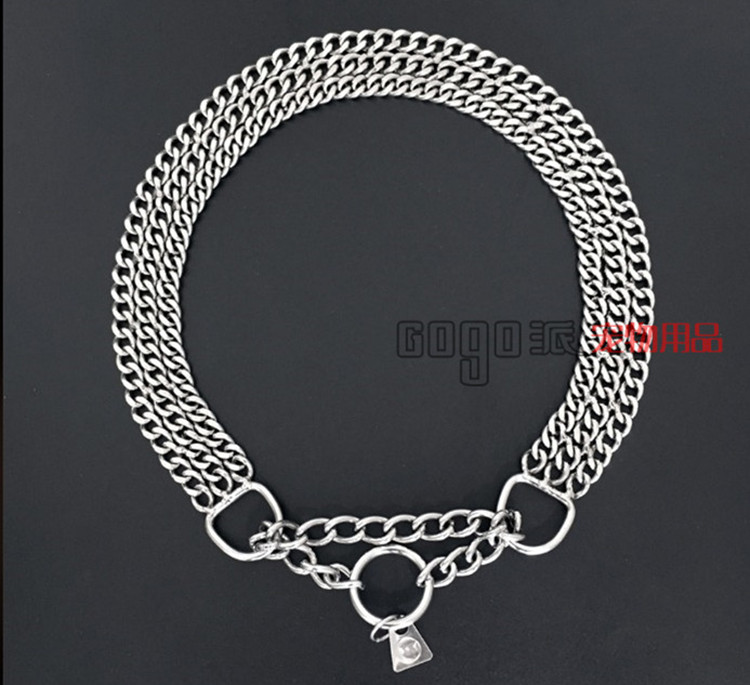 New stainless steel non-retractable P-chain three-row three-ring neck collar large dog chain medium-sized dog Dubin golden hair