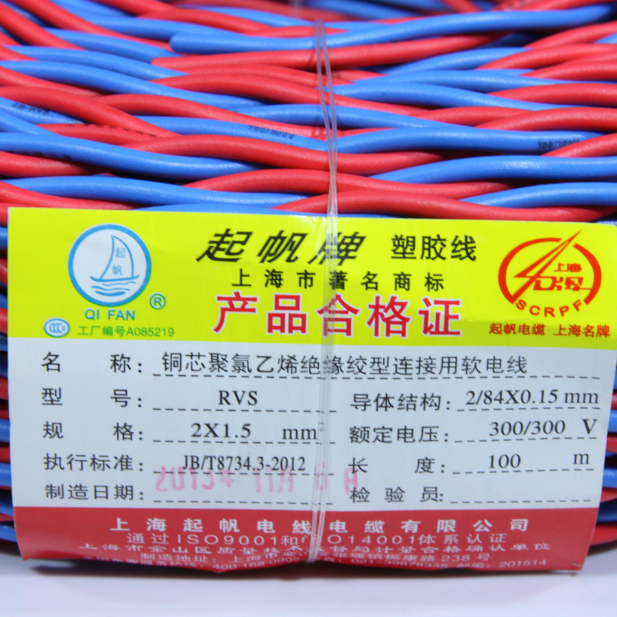 Sail wire RVS2*1 5 twisted pair copper core soft wire national standard line home decoration flower line 2 core national standard line