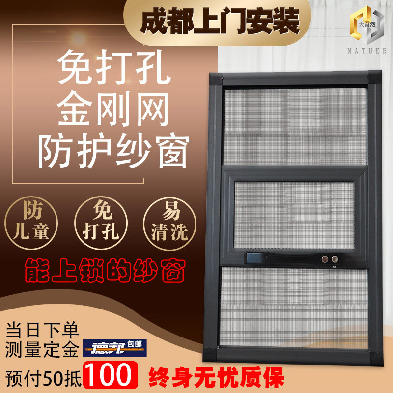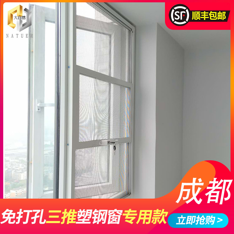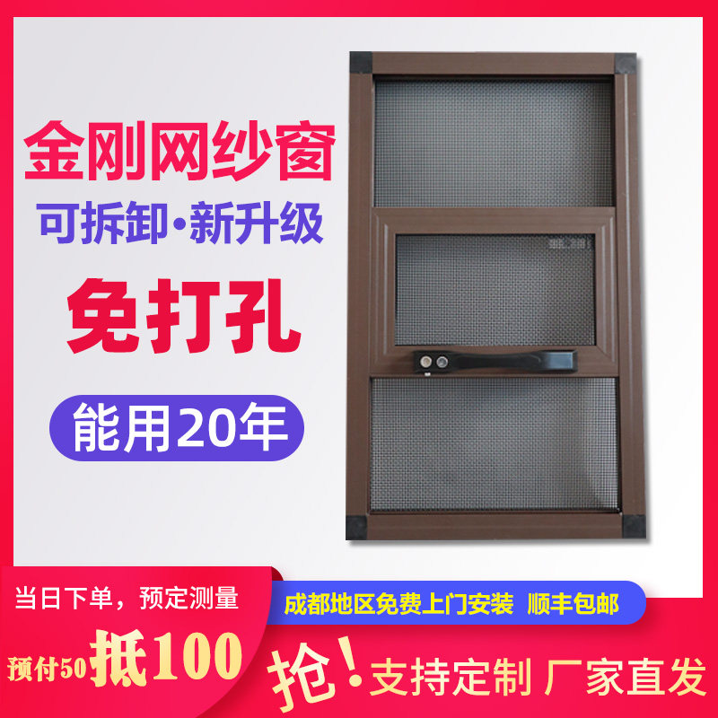 Chengdu three push king kong net anti-theft screen window with lock home self-installed aluminum alloy free perforated sand window anti-mosquito invisible window