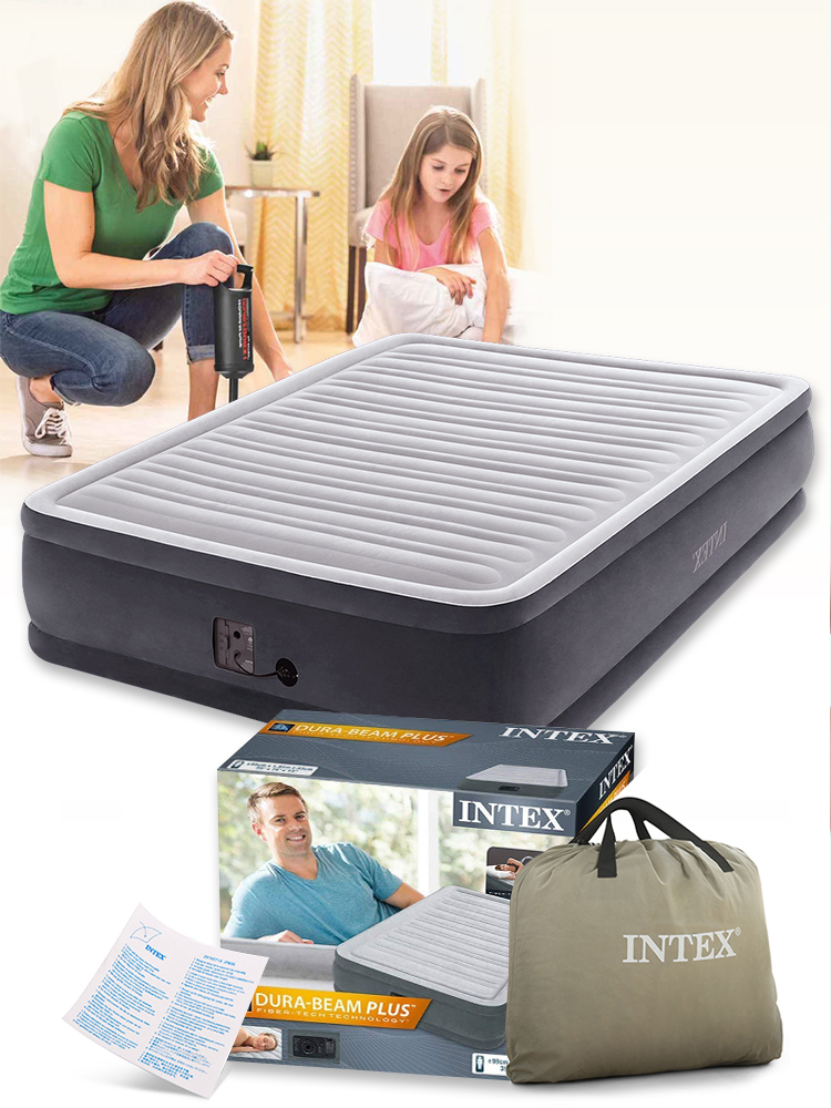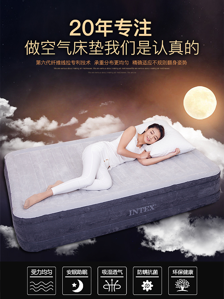 INTEX charging bed with built-in electric pump flocking double double inflatable cushion bed thickened increased air mattress