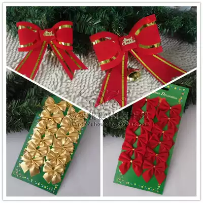 Golden Red Bow Christmas Ornaments Christmas Tree Decoration Hanging Bow Props Festival Decoration Supplies