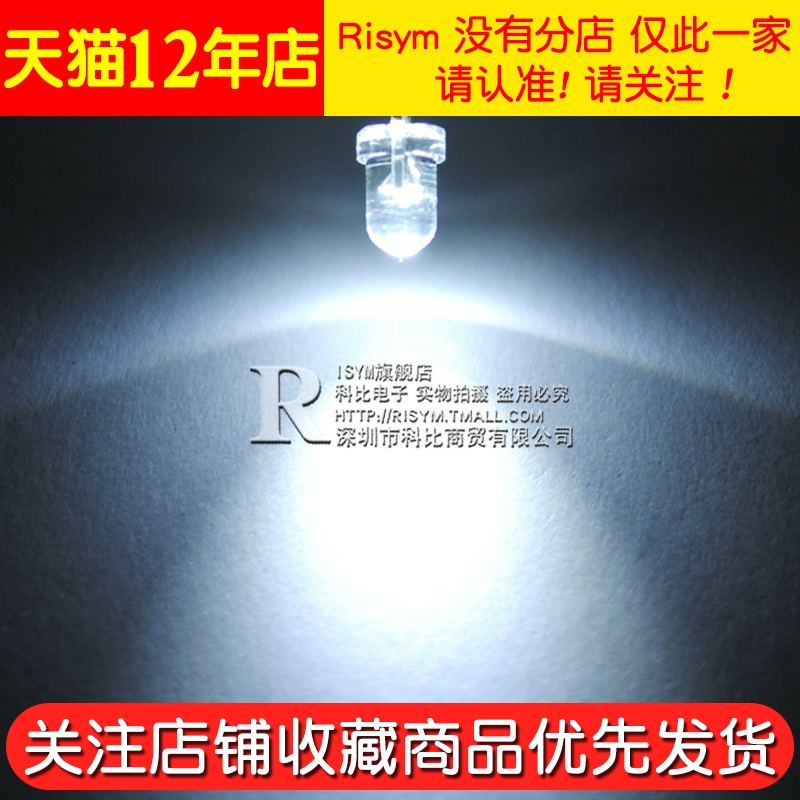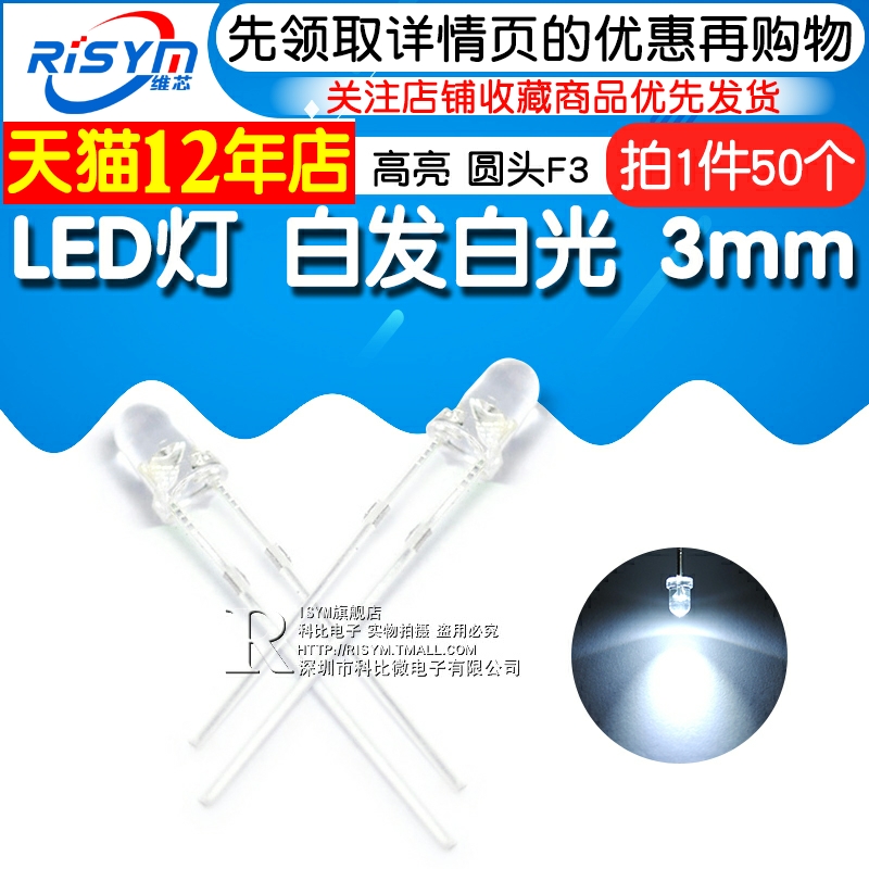 Risym 3MM white white white white LED light 3mm light emitting diode LED white F3 brightens 50