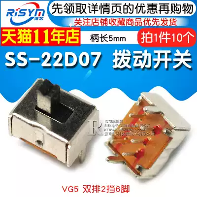 Rsym toggle switch SS-22D07 VG5 double-row 2-speed 6-pin 2P2T sliding switch handle length 5mm