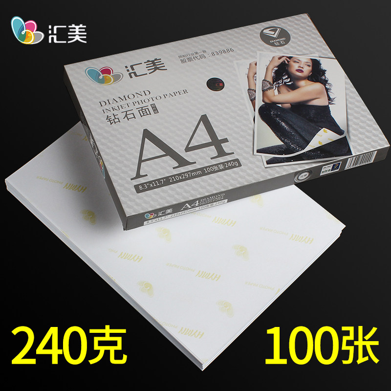 Huimei A4 photo paper 240 g RC high light waterproof photo paper inkjet printing photo paper diamond surface 100 sheets