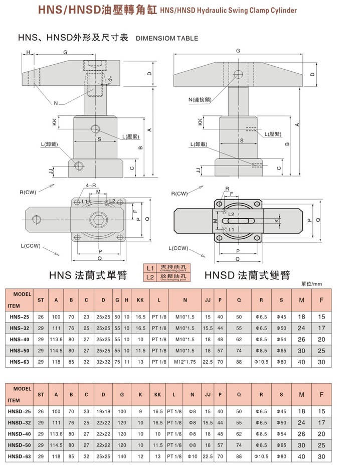 The angle cylinder rotates 90 degrees and presses down on the NHSL R-25 32 40 50 63-90 NHSR-40-90F G
