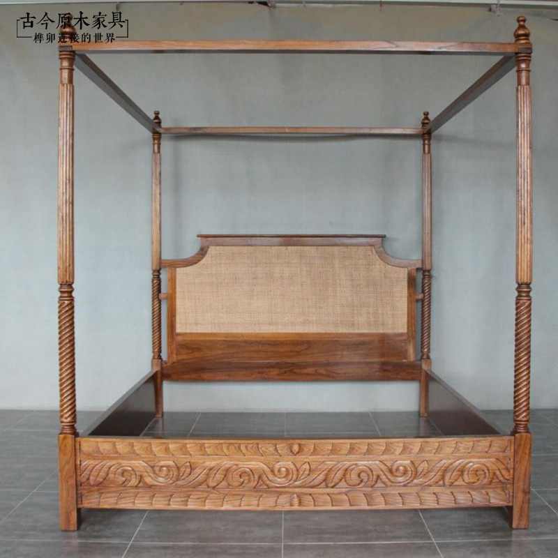 Southeast Asian style furniture solid wood four-poster bed drapery bed ancient and modern log BD226 new Chinese elm frame bed