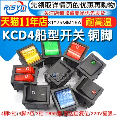 KCD4 rocker switch boat switch rocker power button 4 6 pin Red Light Green Light 31x25mm16A250V