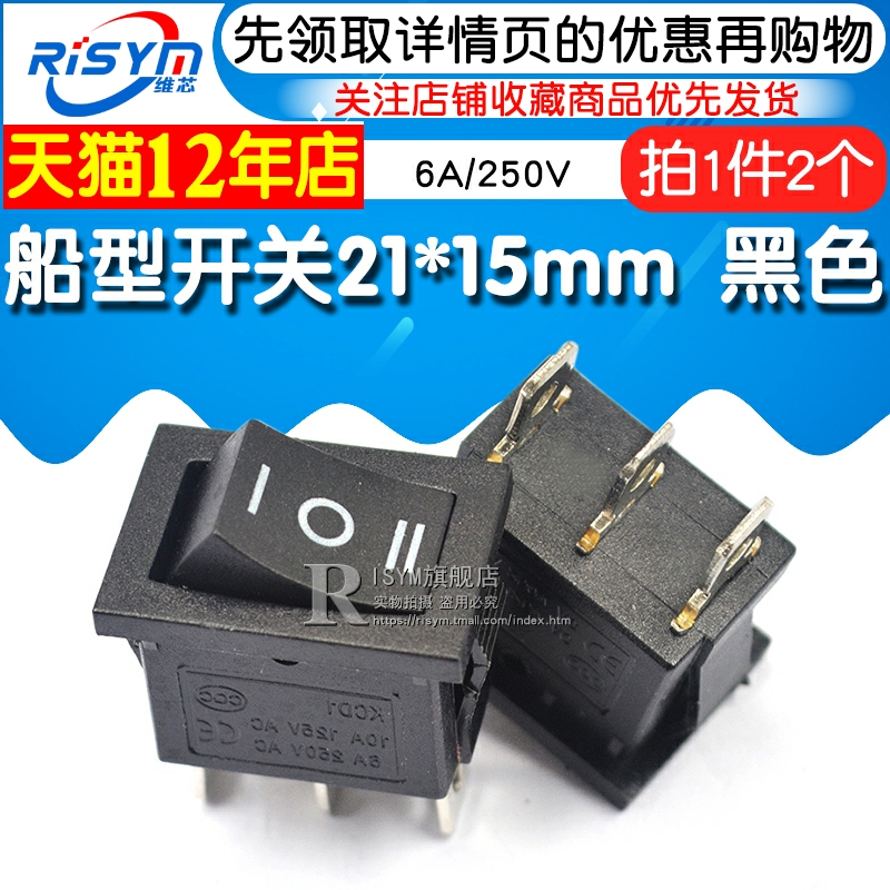 Rocker switch power button black 3 feet three gear 21*15 6A rocker switch rocker switch 2