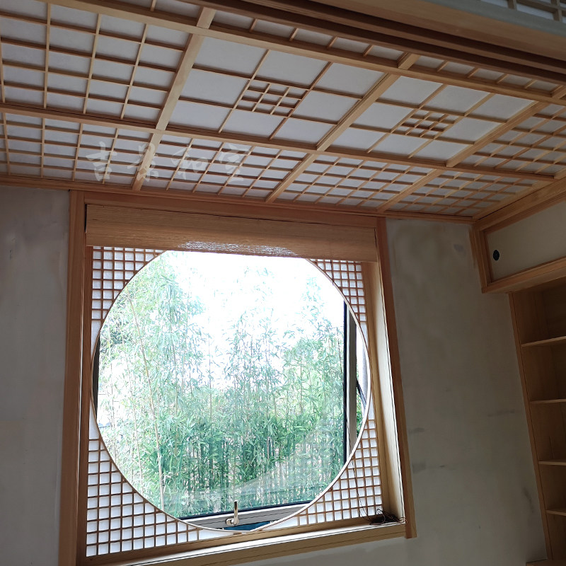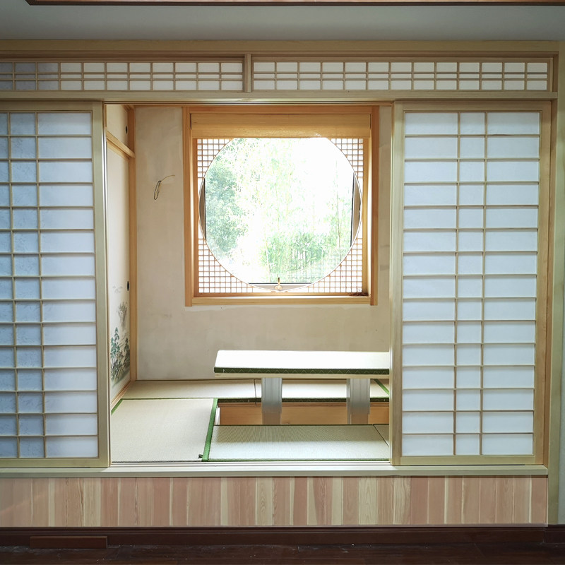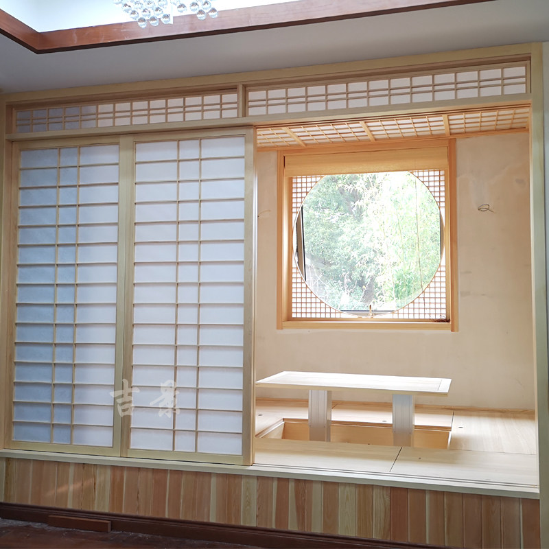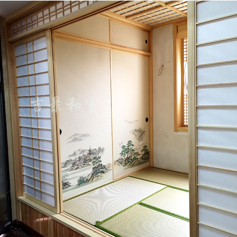 Ningbo pine cypress tatami floor overall solid wood custom Japanese wardrobe design Children's study lattice door