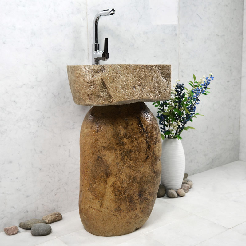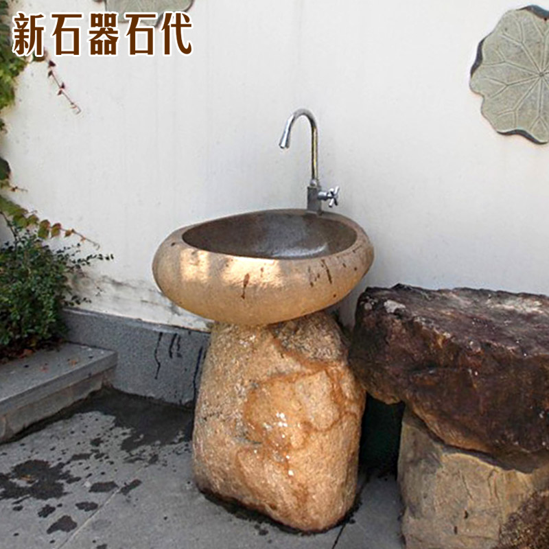 Cobblestone column basin integrated floor-to-ceiling washbasin outdoor courtyard bathroom vintage art stone wash basin