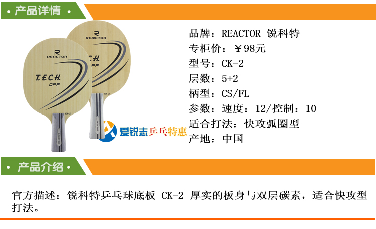 (Ai Shang) Rui Kete table tennis racket bottom plate carbon bottom plate CK-2 double-layer carbon beginner arena training board