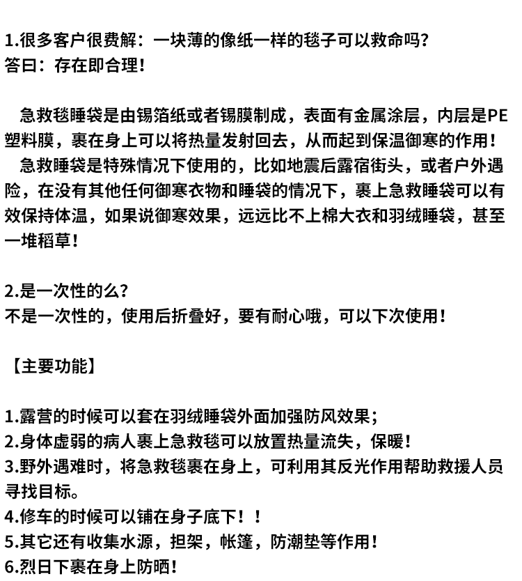 Exported to Japan emergency blanket sleeping bag disaster prevention emergency sleeping bag outdoor emergency special thermal insulation sleeping bag 81g