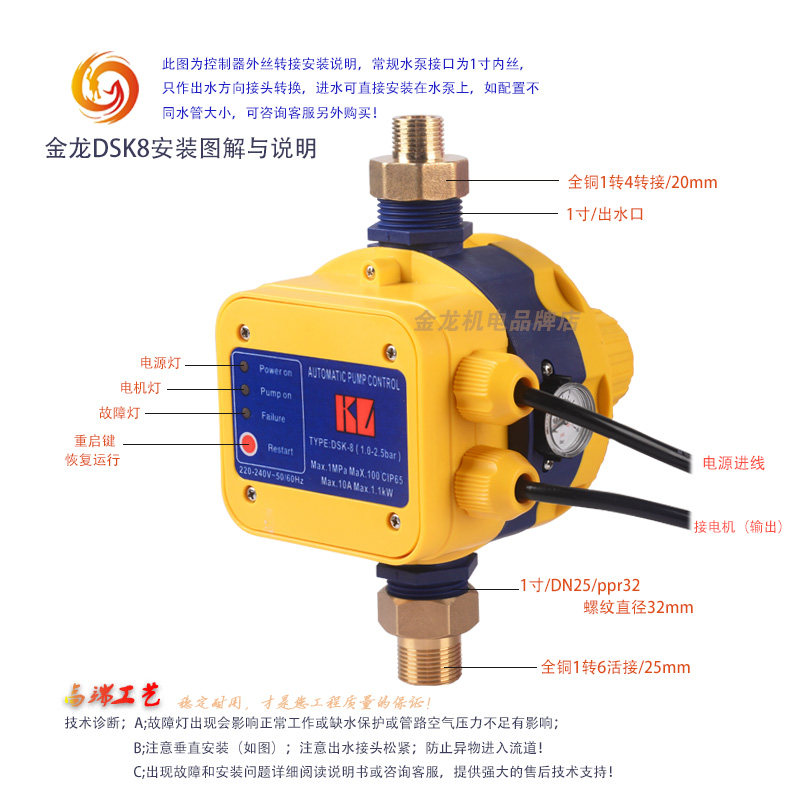 Water pump Water flow pressure switch Booster pump hot water shortage protection Jinlong Electronics intelligent adjustable automatic controller