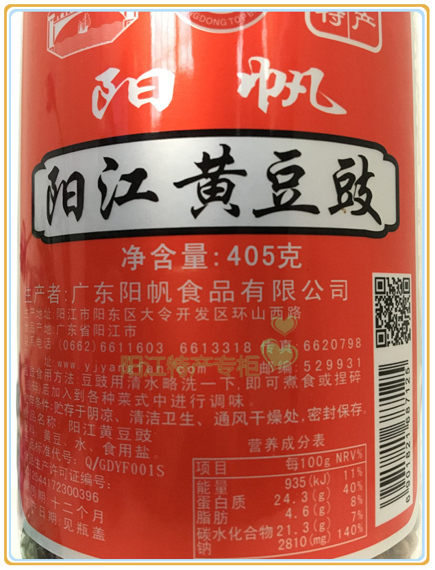 5 copies of Yangjiang Tei Produce White Bean Sauce Yang Sails Yellow Bean Sauce 405g cylinder Loaded Seasoning