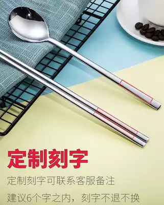 23cm flat chopsticks 21cm solid spoon flat chopsticks spoon 304 square chopsticks 1 pair large quantity can be lettering for free