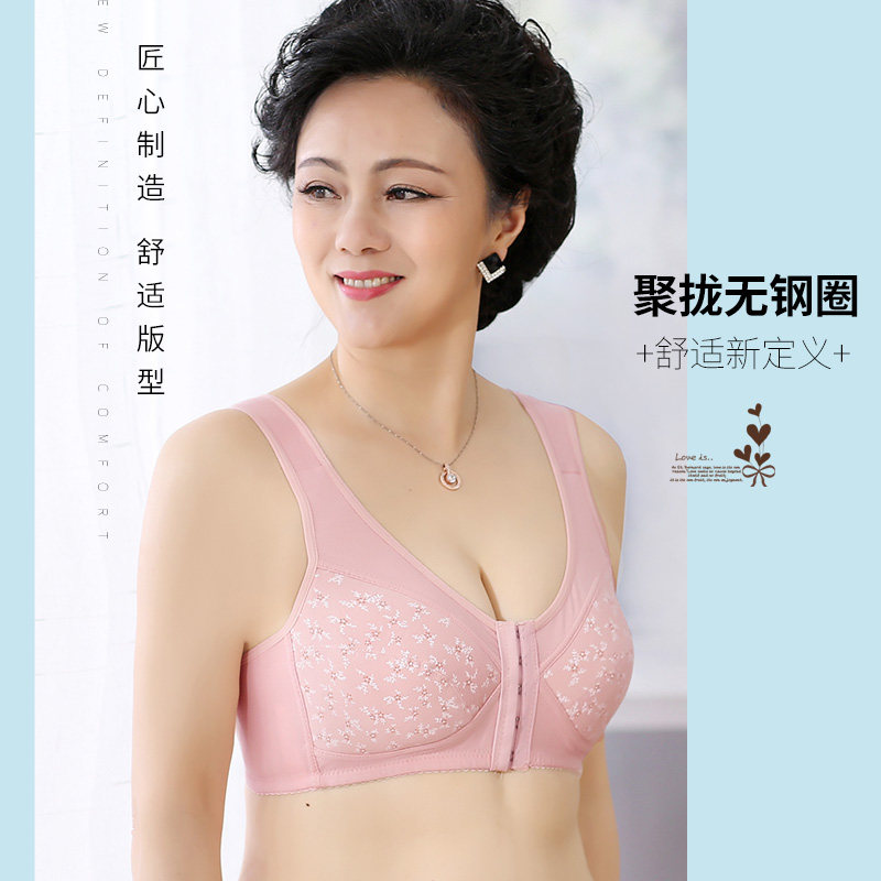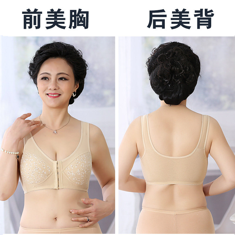Middle aged people without steel ring bra thin undergarments pure cotton full cotton revelry vest-style mom front buckle large size for underwear