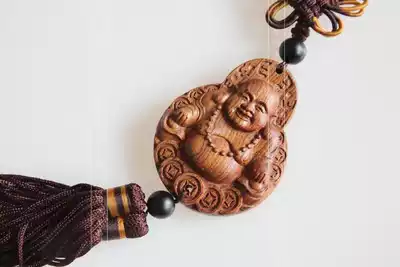 Rosewood Guanyin car hanging in and out of safe car interior smile Buddha pendant hanging jewelry wood carving safety safety charm