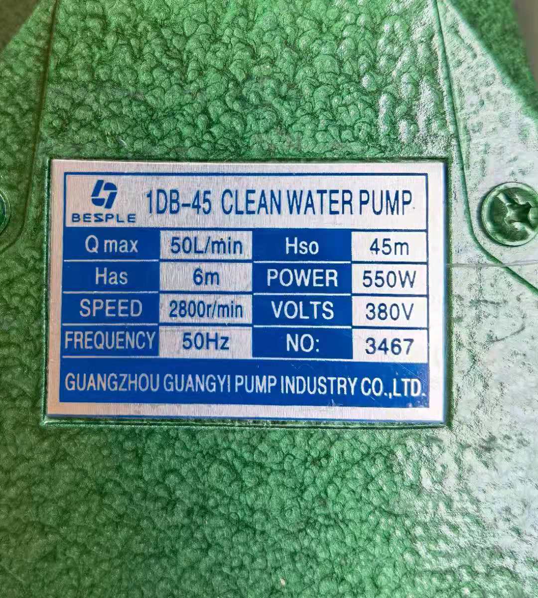 Guangzhou Yi Pump 1DB-45 clean water pump household booster pump 550W Guangzhou Yi Pump 1DB-65 three-phase circulating pressure pump
