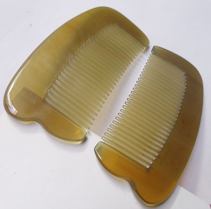 Wedding gift small pair comb old horn white buffalo horn natural better than yak horn comb massage comb