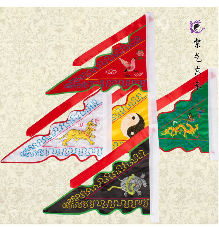 Taoist Supplies Five Elements Banner Green Dragon White Tiger Suzaku Xuanwu Divine Beast Double Banner Large Five Ling Banner Five Square Dao Banner