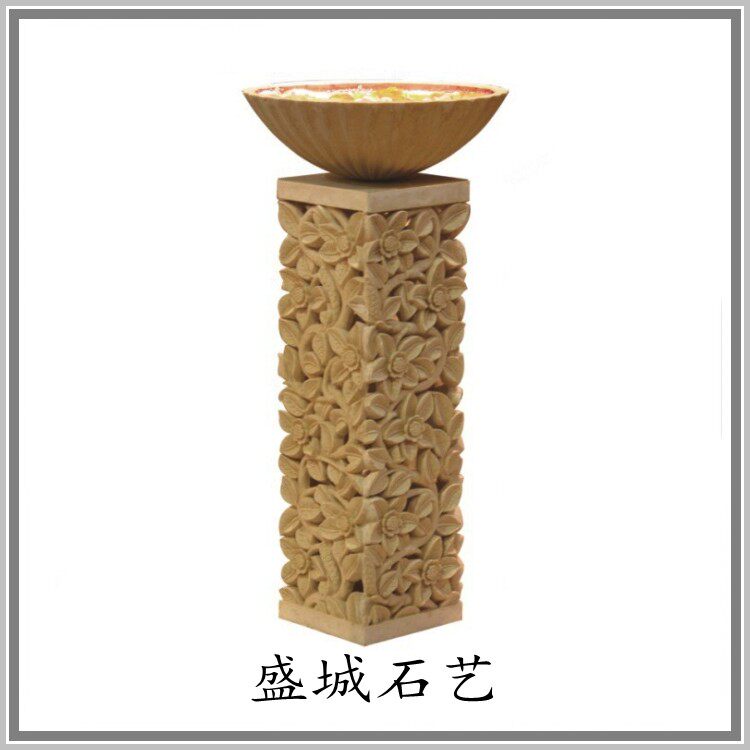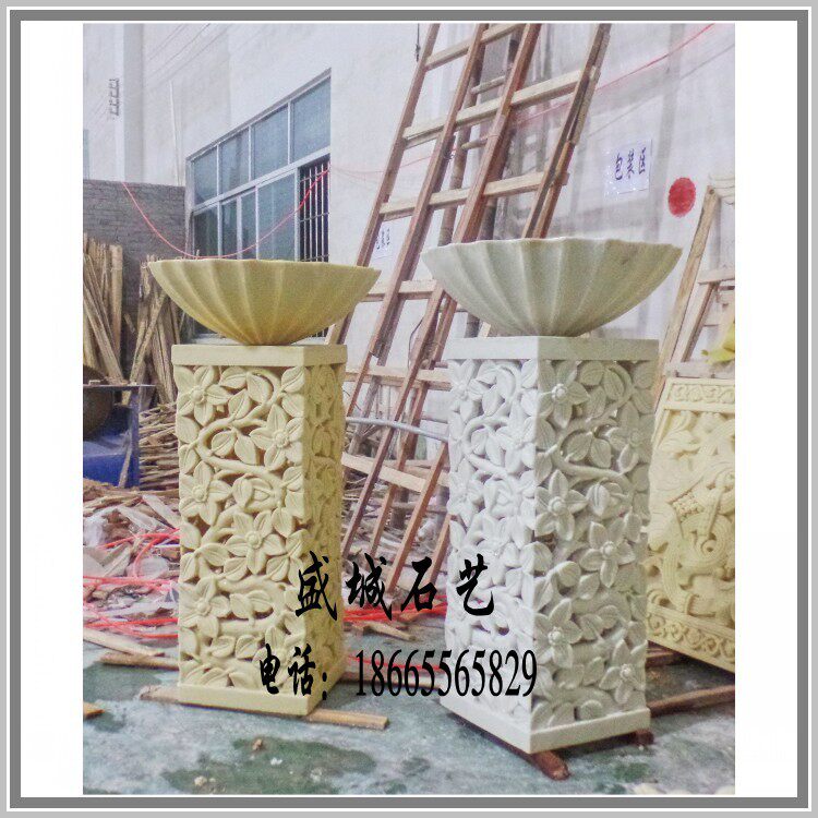 Sandstone flowerpots hollowed-out column piers customized sandstone sculptures European-style embossed solid frescoed garden spray pool Roman columns