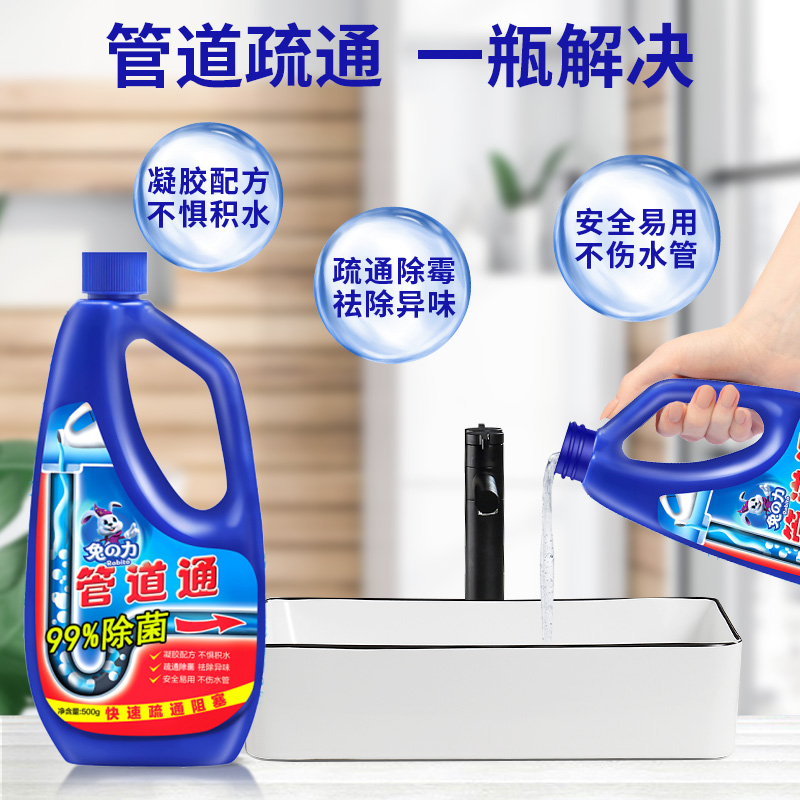 Rabbit Force Powerful Pipe Dredging Agent Sewer Dredge Toilet Toilet Kitchen Piping Clogged Clog 500g * 2 bottles