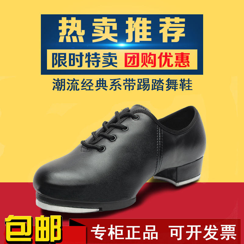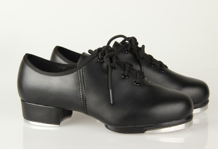 Dans show beginner tap dance shoes soft sole imitation leather unisex dancing shoes children tap dancer tie
