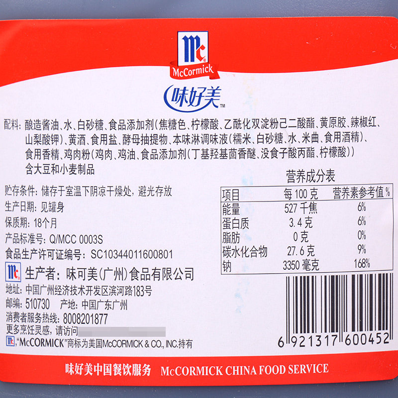 Caramel color, citric acid acetylated distarch adipate, xanthan gum, chili red potassium sorbate, etc. The actual information on the product packaging shall prevail
