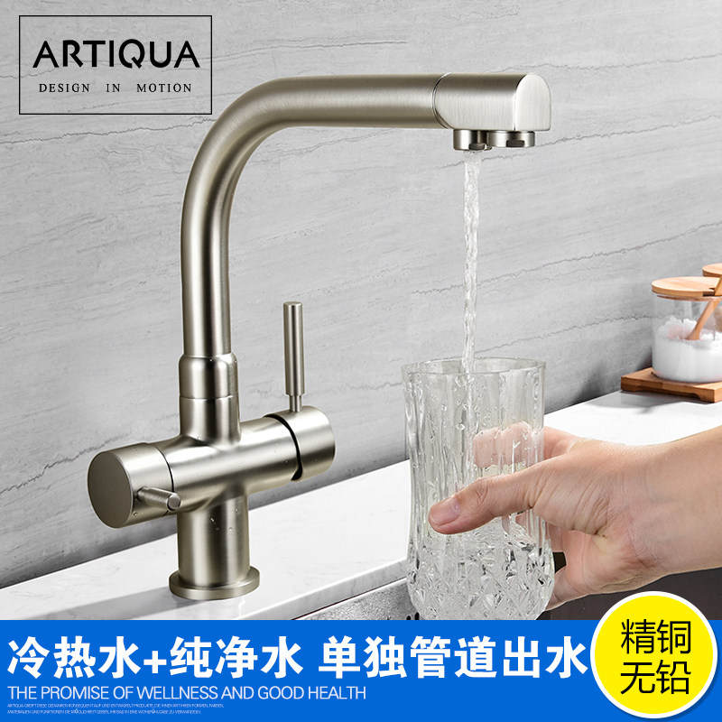Unleaded full copper pure tap hot and cold kitchen washing basin sink tap black triHop has been drinking tap all the time