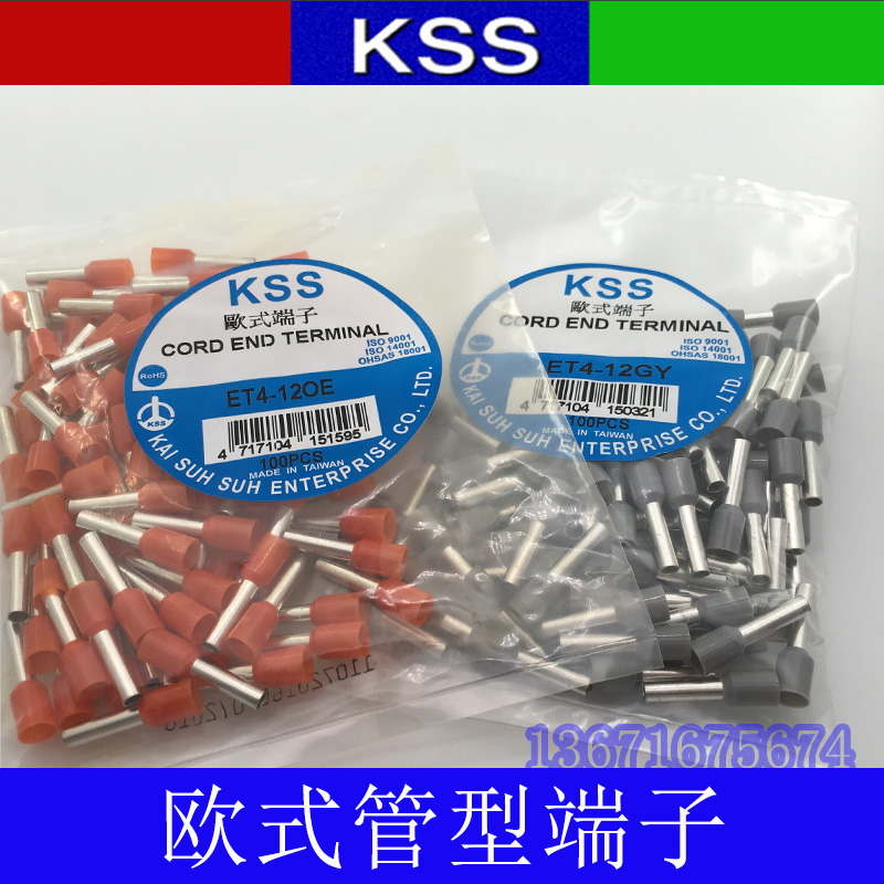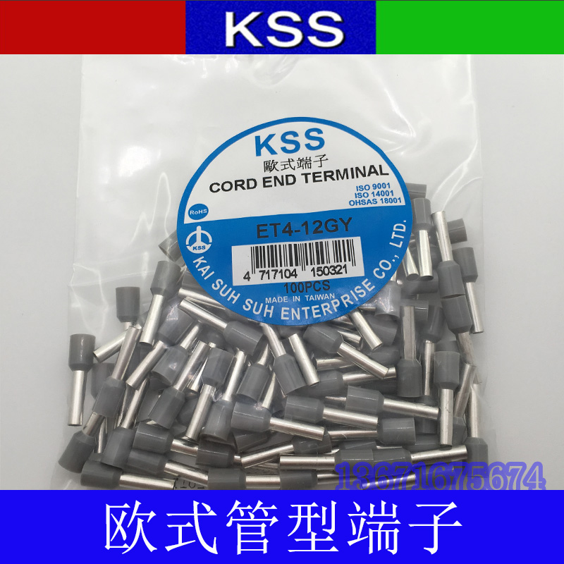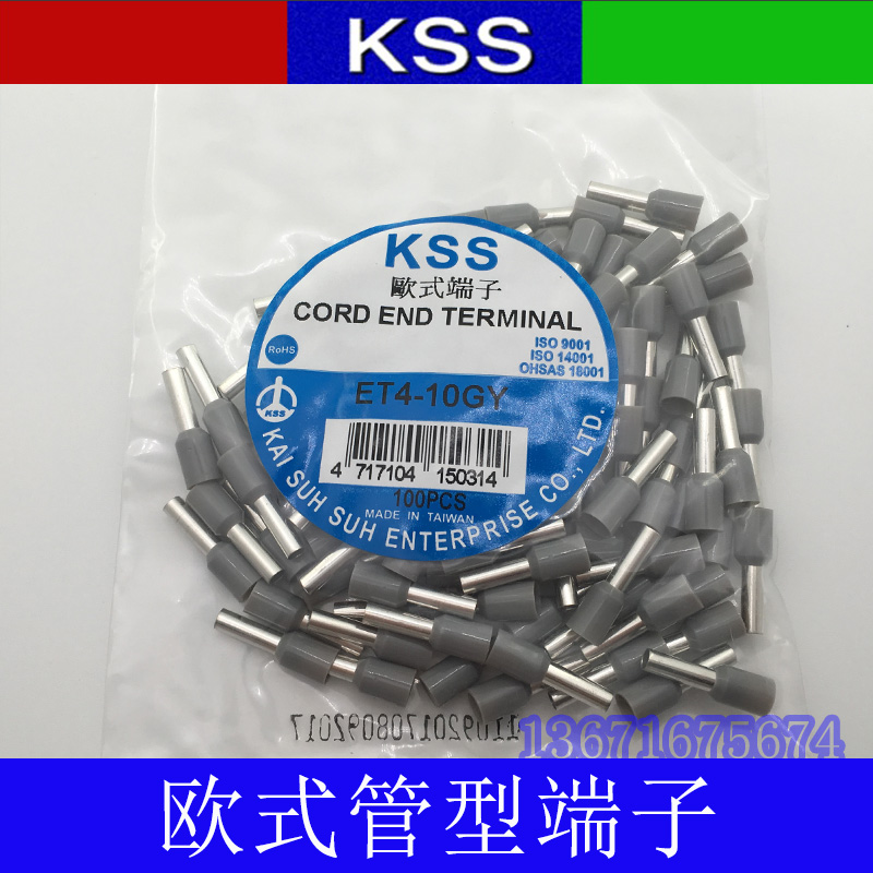 Taiwan KSS European-style tubular terminal ET4-10 12GY (wiring 4 squared) grey wire 100 packets only