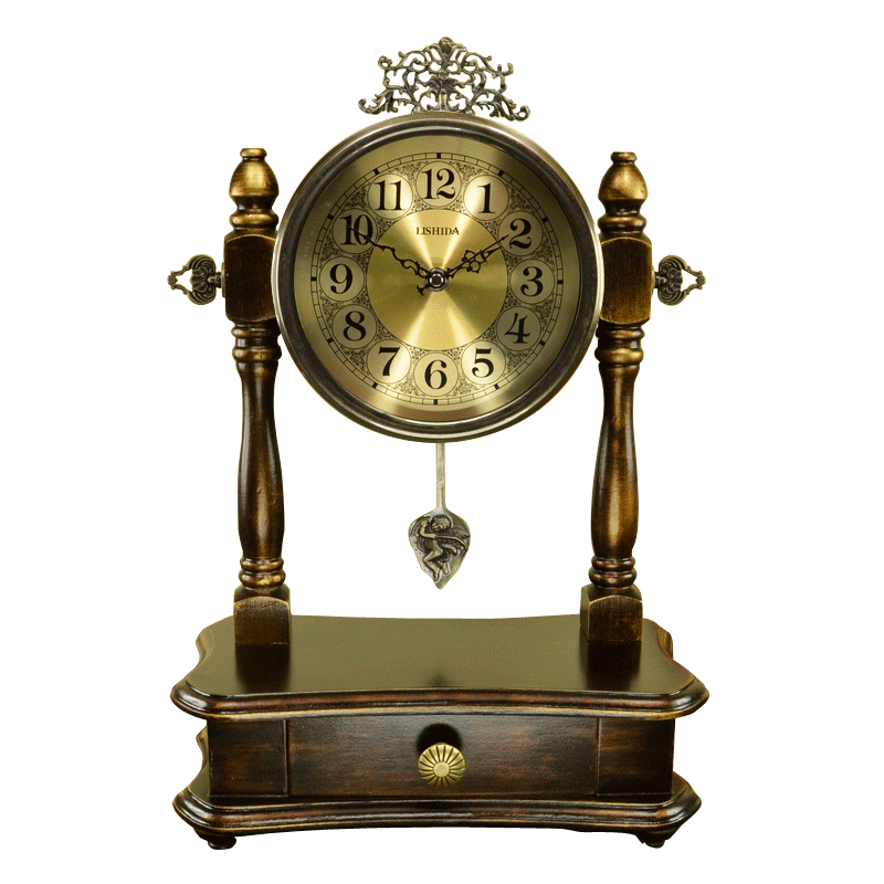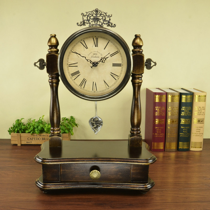 European solid wood clock Retro living room clock Pastoral fashion desktop clock Bedroom American swing table clock Time clock