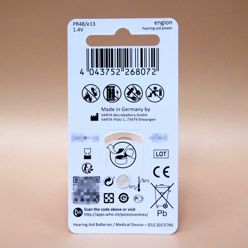 Germany imported engine engion e13 hearing aid battery A13 zinc air electronic PR48 1 4V