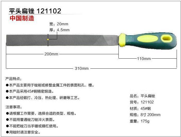 (Shanghai-workers) Fuyuan steel filing pliers work file anti-slip bicolor plastic handle mid-tooth flat file fine plastic packaging filing knife