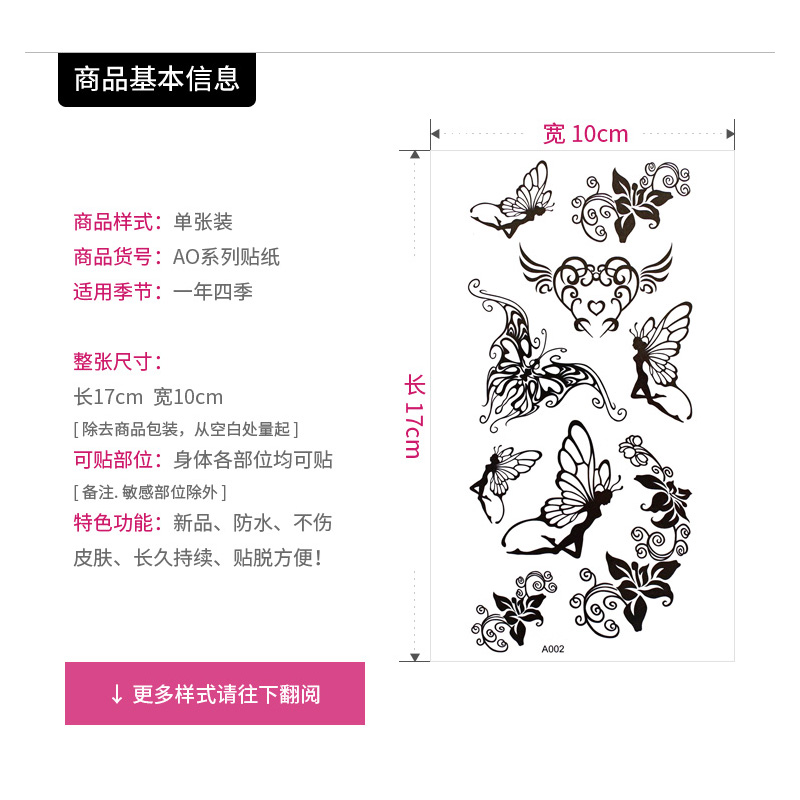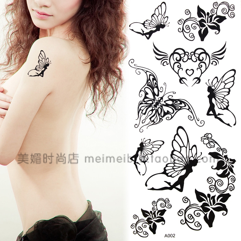 Small fresh tattoo stickers female black wings little angel forest elf Japanese waterproof durable cute girl heart