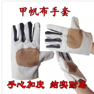 Gapi Canvas Gloves Hand Pistachio Leather Plus Electric Welding Operation Labor Protection Gloves Handling Machinery Gloves