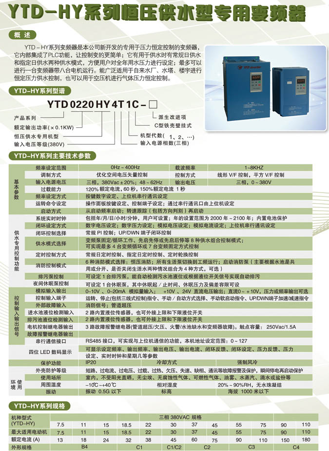 AISET Shanghai Yatai frequency converter YTD--HY series constant pressure water supply type special frequency converter