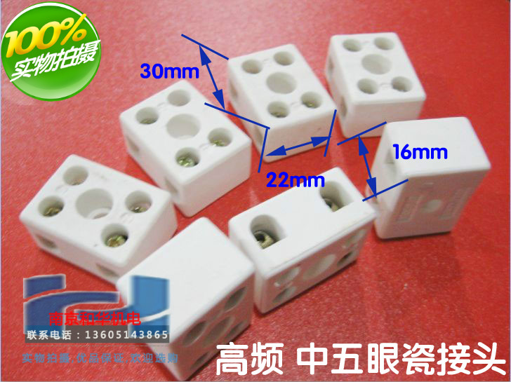 Ceramic connector Wire terminal post High temperature insulated porcelain terminal post Electric furnace terminal block (five eyes in the middle)