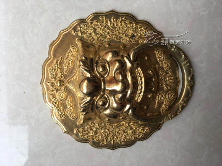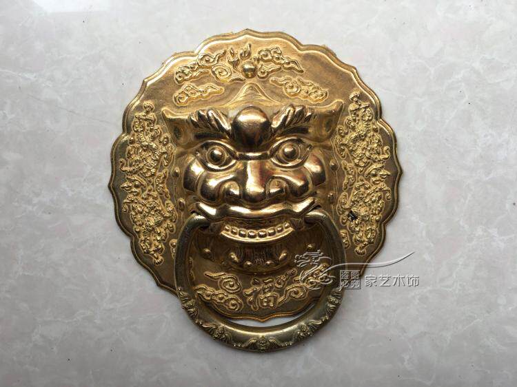 Imitation ancient pure all-copper door ring gate handle Chinese solid wood door ancient bronze lion head beast face temple hall door handle