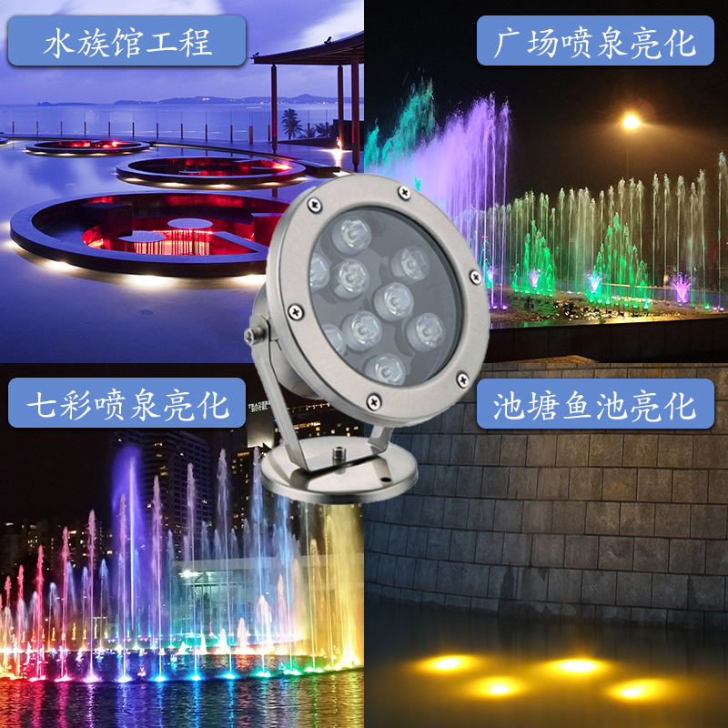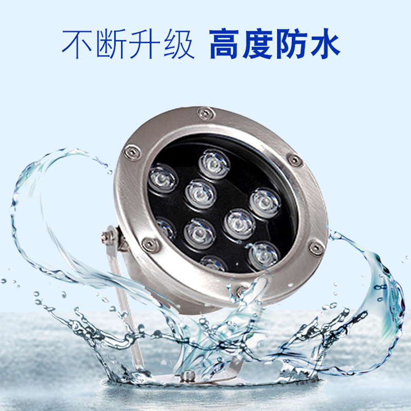 Underwater light stainless steel high power underwater pool underwater spot light 3W6W9W12WLED colorful Yongquan fountain light