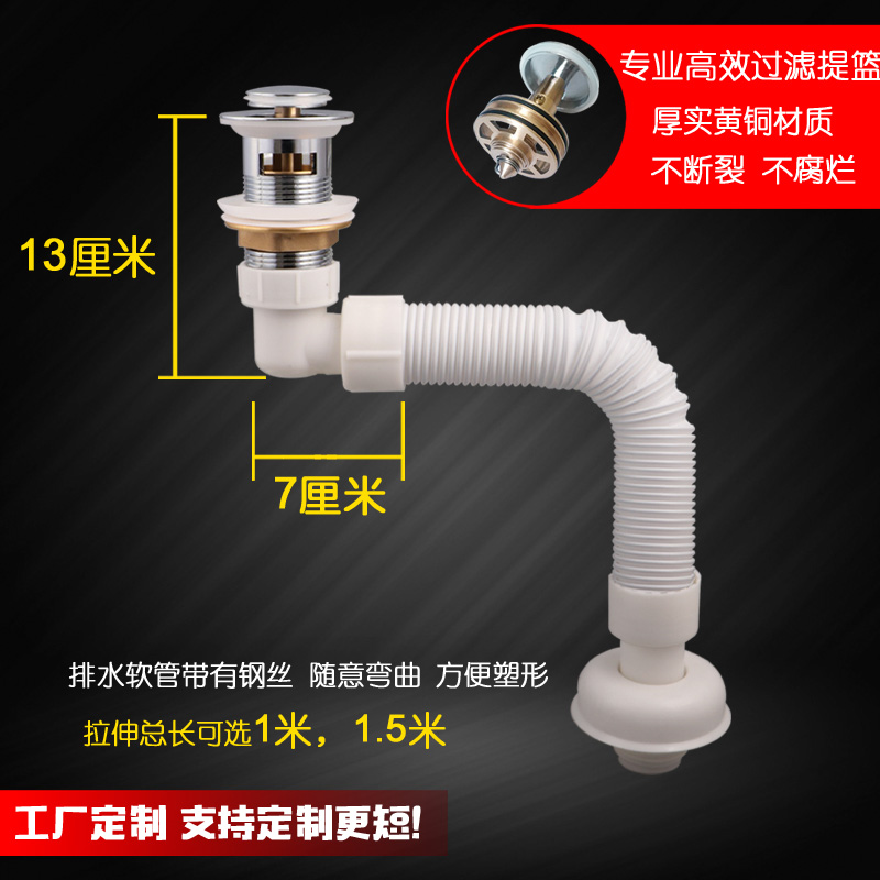 Short washbasin all copper bouncing flap cover anti-odor plugging sewer countertop basin wall row side row rear hose