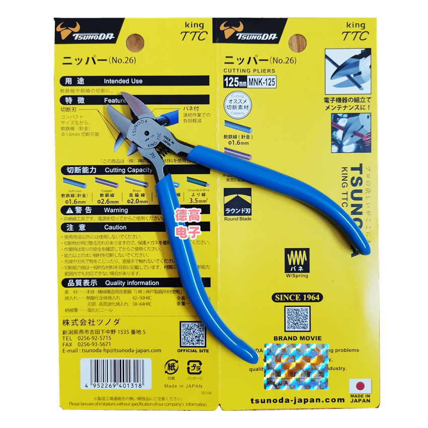 Original Japanese TTC Jiaotian brand oblique pliers MNK-125 oblique nozzle mouth pliers 5 inch IC electronic cutting pliers