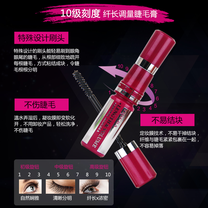 Opera Volume Mascara Long, curly, thick, easy-to-control mascara Fiber Waterproof, non-smudging
