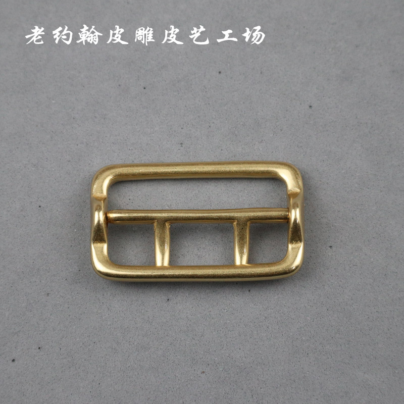 Double-pin belt buckle Uniform male pure copper wearing earday-word armed belt buckle 54mm pure copper color
