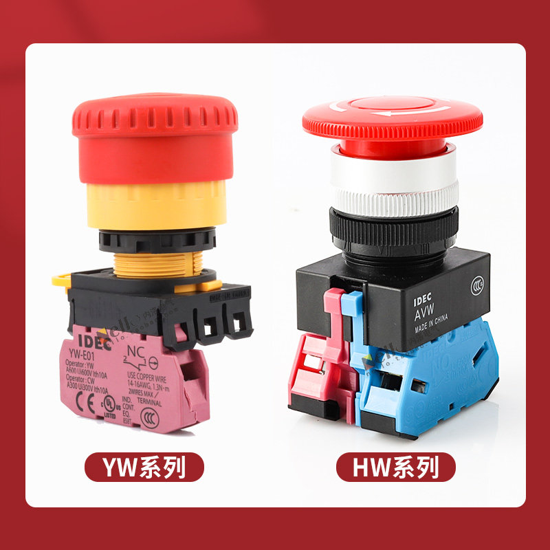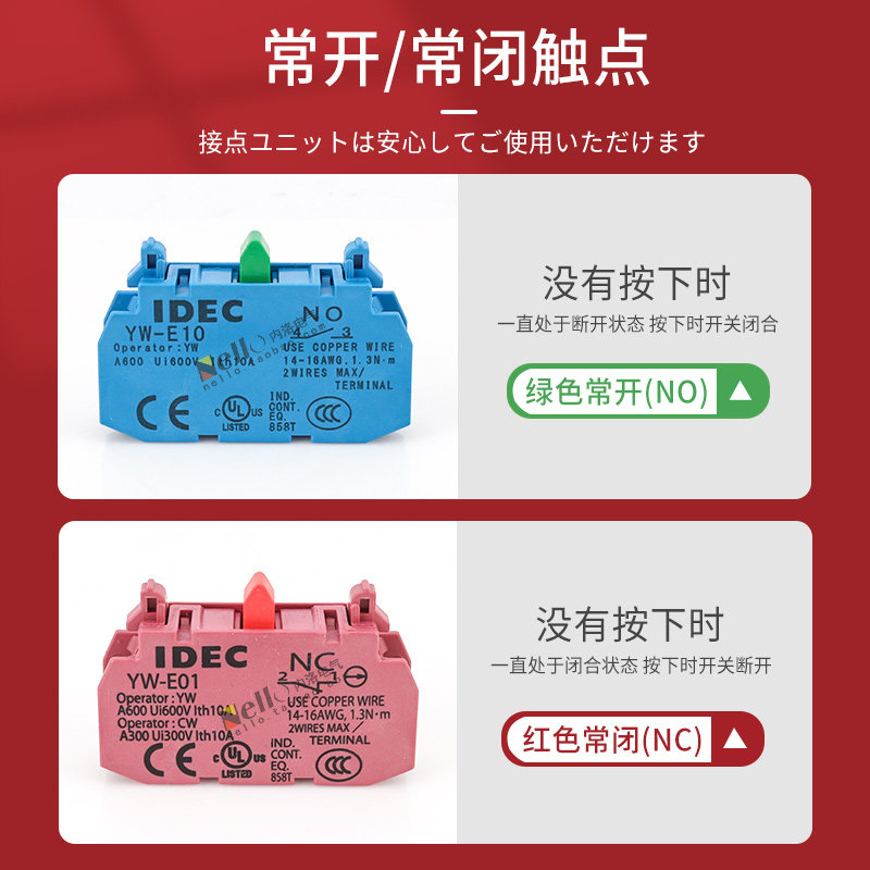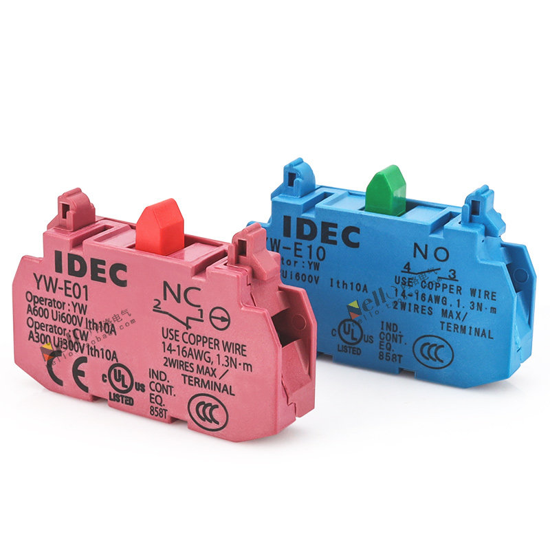 IDEC and Quan YW series 22mm aperture button switch assisted contacts commonly open YW-E10 regularly closed YW-E01