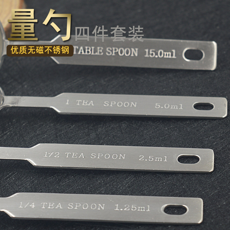 Quantity Spoon Four Pieces Stainless Steel Kitchen Control Salt Spoon Baking Scotch Spoon Milk Tea Shop Seasoning 5 gr 15ml