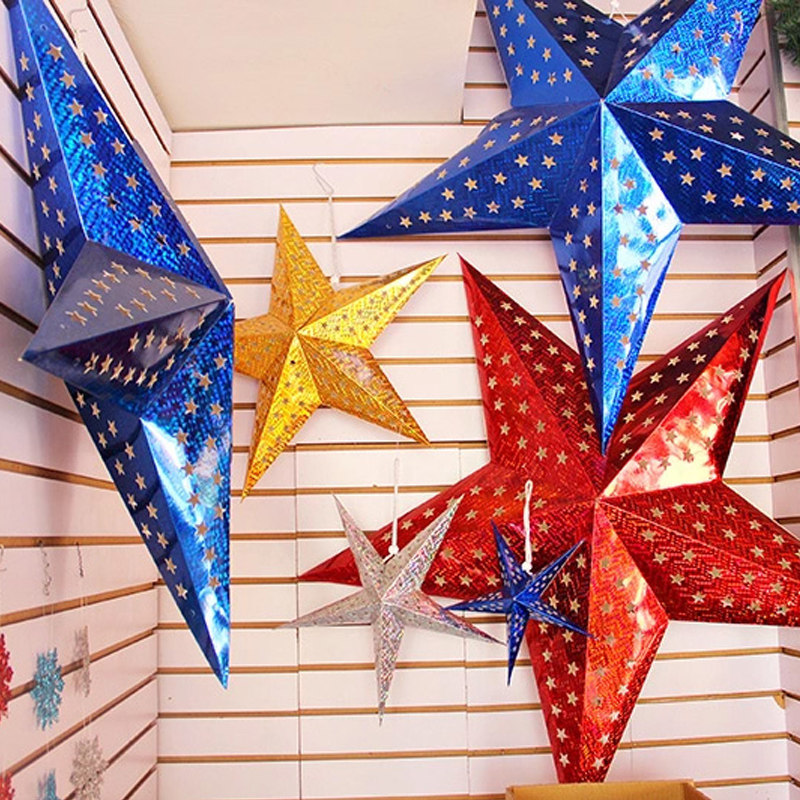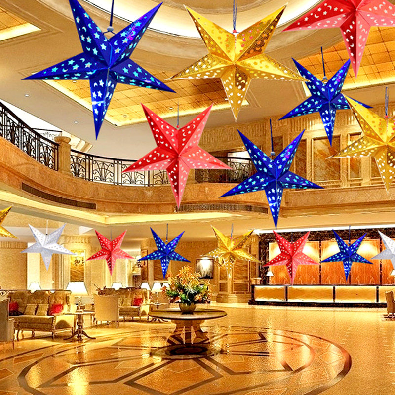 Halloween laser five-pointed star lampshade three-dimensional decoration Hanging ceiling hanging double-sided bar shopping mall star lampshade pendant