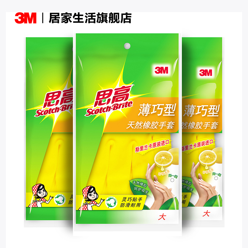 3M thinking high rubber housework gloves kitchen dishwashing clothes for home latex durable lengthened thin stick sticklers