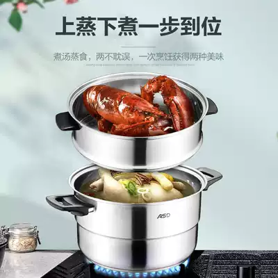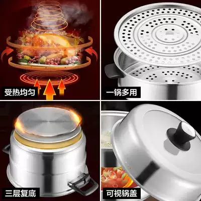 Aishida steamer 304 stainless steel large capacity gas induction cooker universal thickened three-layer compound bottom household saucepan