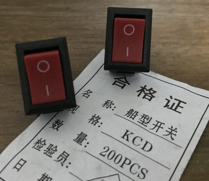 Two-foot-two-gear rocker switch KCD1-101 black seat red button copper foot up and down contact point 21X15 0-1